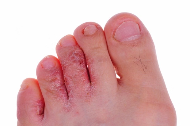 • μαλάκωμα του δέρματος (πληγή) μεταξύ των δακτύλων, στα πέλματα και στις φτέρνες)