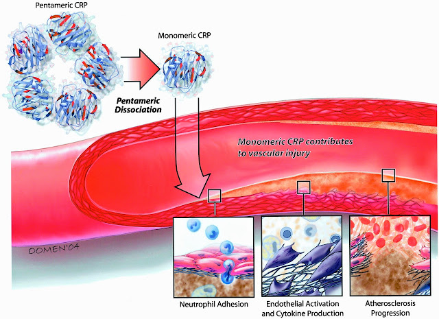 Μεγάλη η σημασία που διαδραματίζει η CRP και στα καρδιαγγειακά νοσήματα, αναδεικνύοντας τον ρόλο της στις διεργασίες αθηροσκλήρωσης και αθηροθρομβογένεσης, με αποτέλεσμα την αύξηση των πιθανοτήτων ανάπτυξης καταστροφικών καρδιαγγειακών επεισοδίων.
